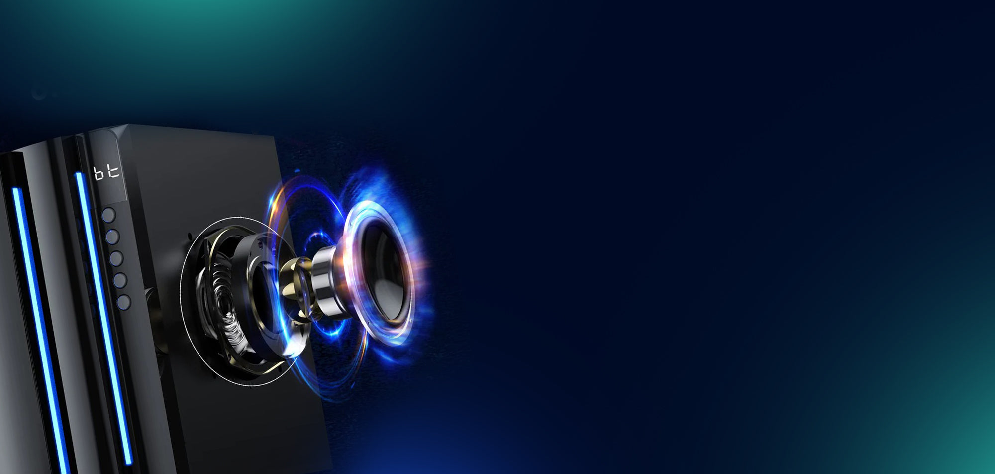Immersive audio with rich bass and clear treble, distortion-free sound.