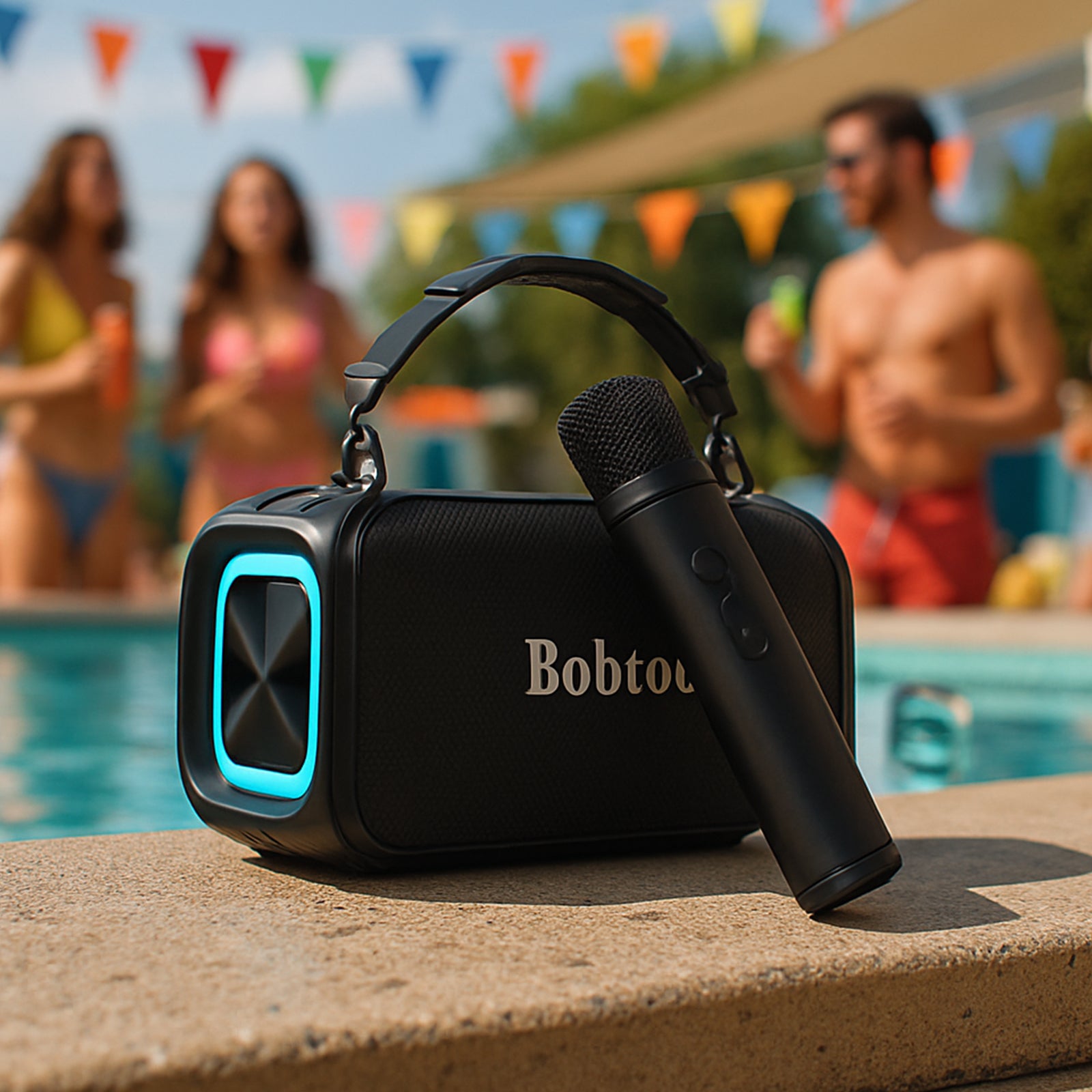 The life of any party, the BoomStar delivers booming sound, vibrant lights, and wireless karaoke fun in a sleek and portable design. Whether you're hosting a karaoke night or dancing along to your favorite tunes, this speaker brings the energy and the beats to every occasion.