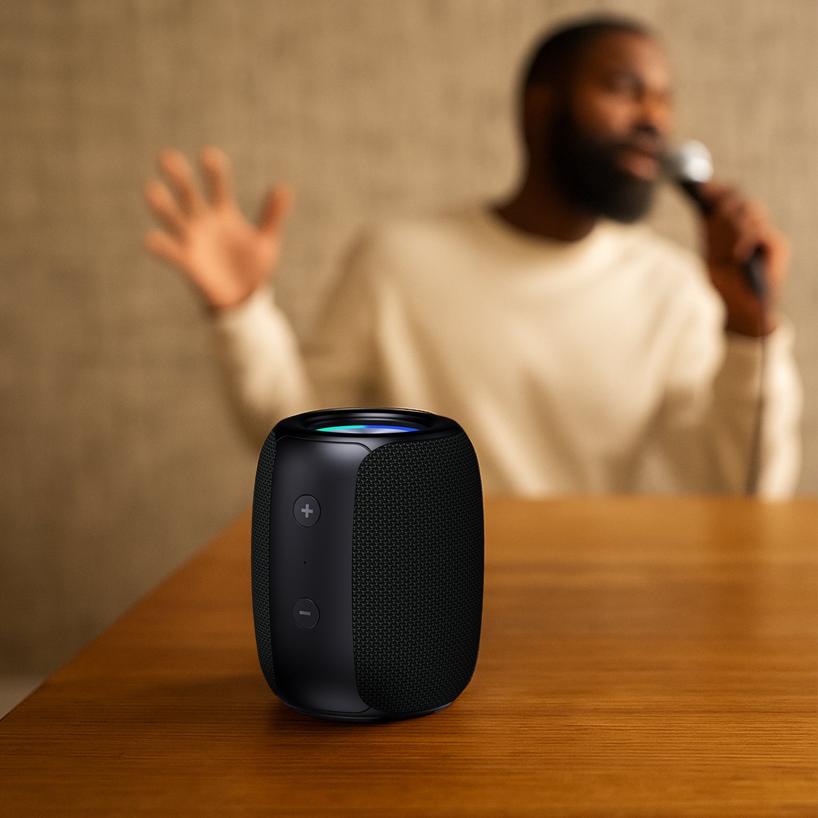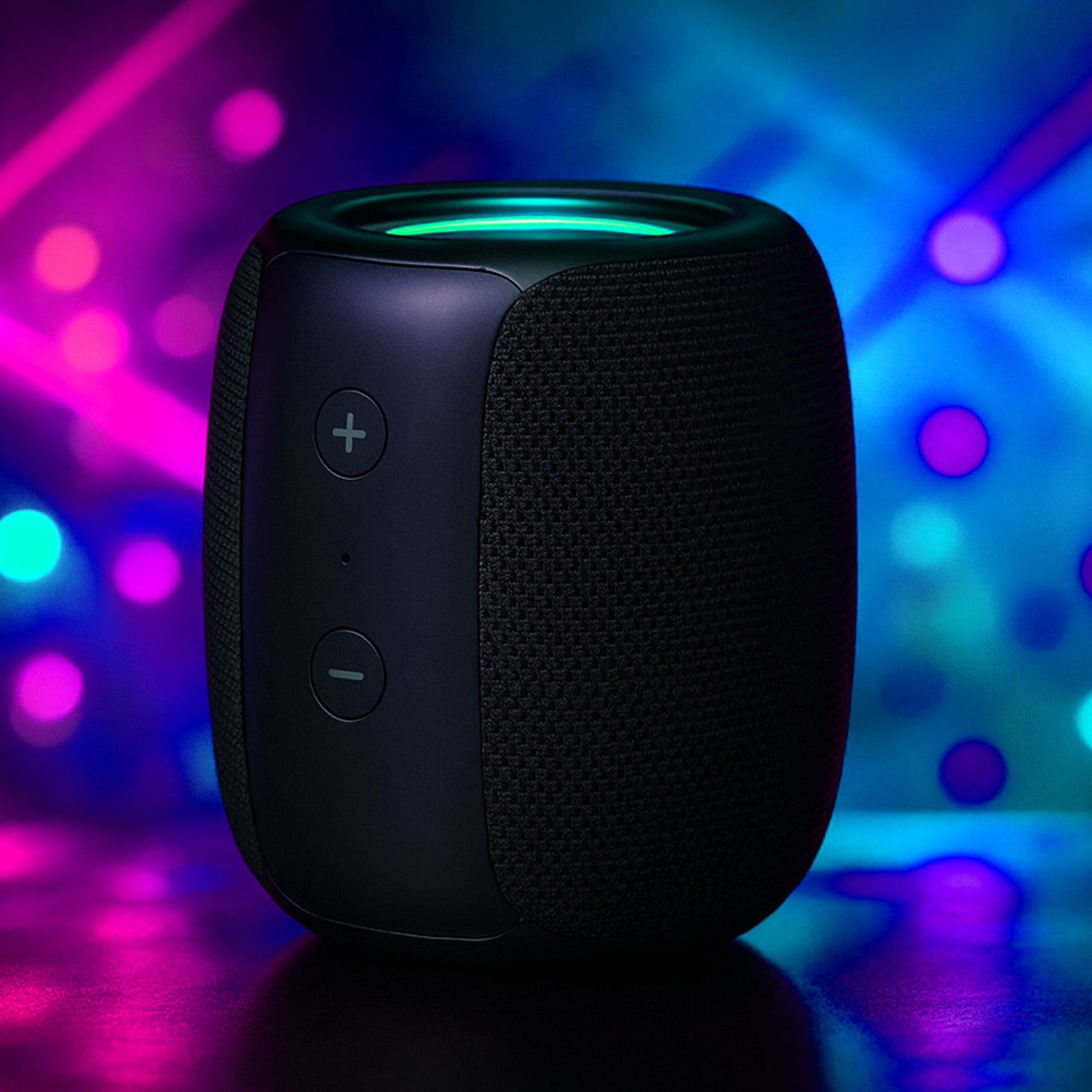 Whether you’re at the pool, a picnic, or chilling indoors, its IPX6 waterproof build and 12-hour battery life keep the music going without a break. Type-C fast charging gets you back in the groove quickly, while adjustable RGB lights set the mood. Plus, the built-in mic makes hands-free calls effortless.