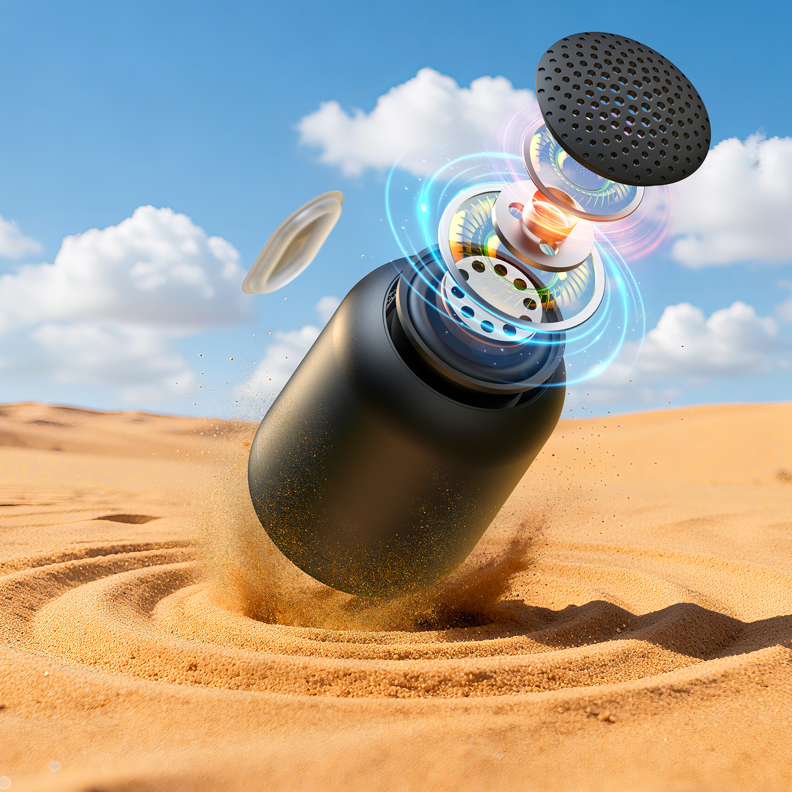 Built for life on the go, it offers up to 24 hours of playtime, seamless Bluetooth 5.4 connectivity, and IPX5 water resistance—perfect for everything from desk sessions to mountain trails. Pair two speakers for immersive stereo sound and enjoy music that moves with you, wherever the day takes you.